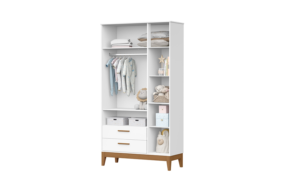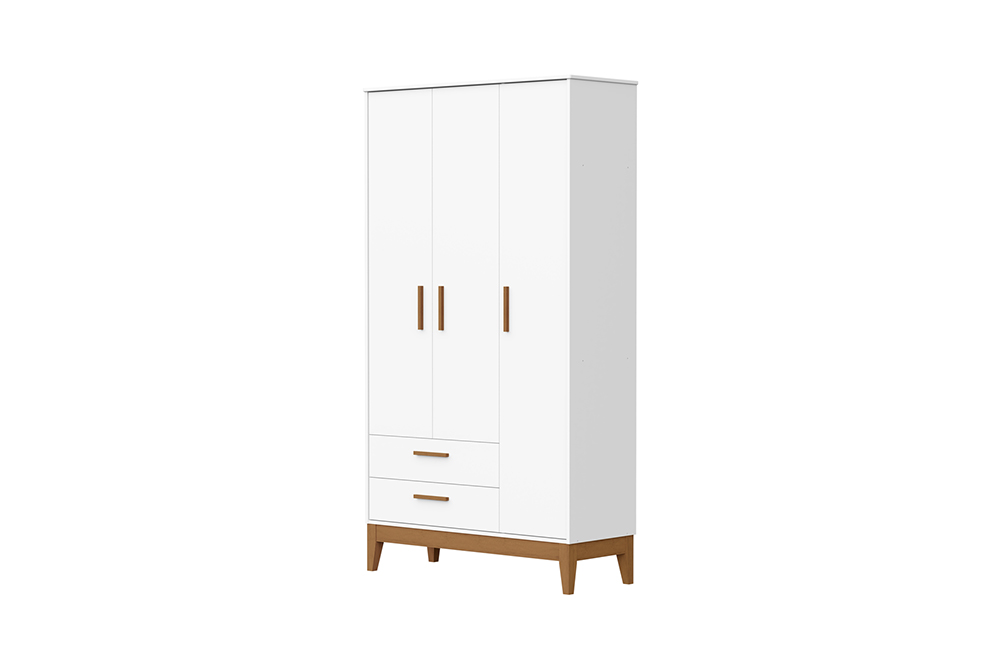 Armário com 3 portas e 2 gavetas, 100% MDF e pés em madeira.