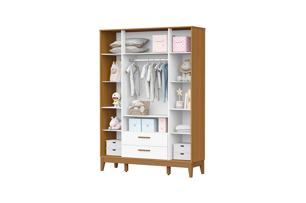 Armário com 4 portas e 2 gavetas, 100% MDF e pés em madeira.