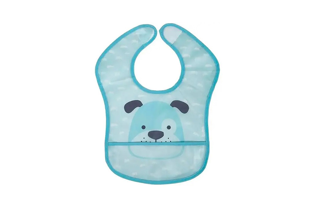 O Babador  é feito de tecido impermeável e possui um bolso para pegar migalhas, perfeito para proteger as roupas do bebê. O fecho em tiras autocolantes se ajusta facilmente ao pescoço do pequeno.