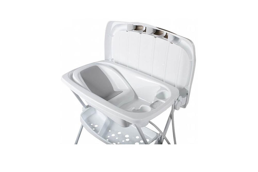 - Capacidade máxima da banheira (Bebê + Água) = 20 kg; Banheira 2 em 1 – o tanque pode ser utilizado no suporte ou fora;