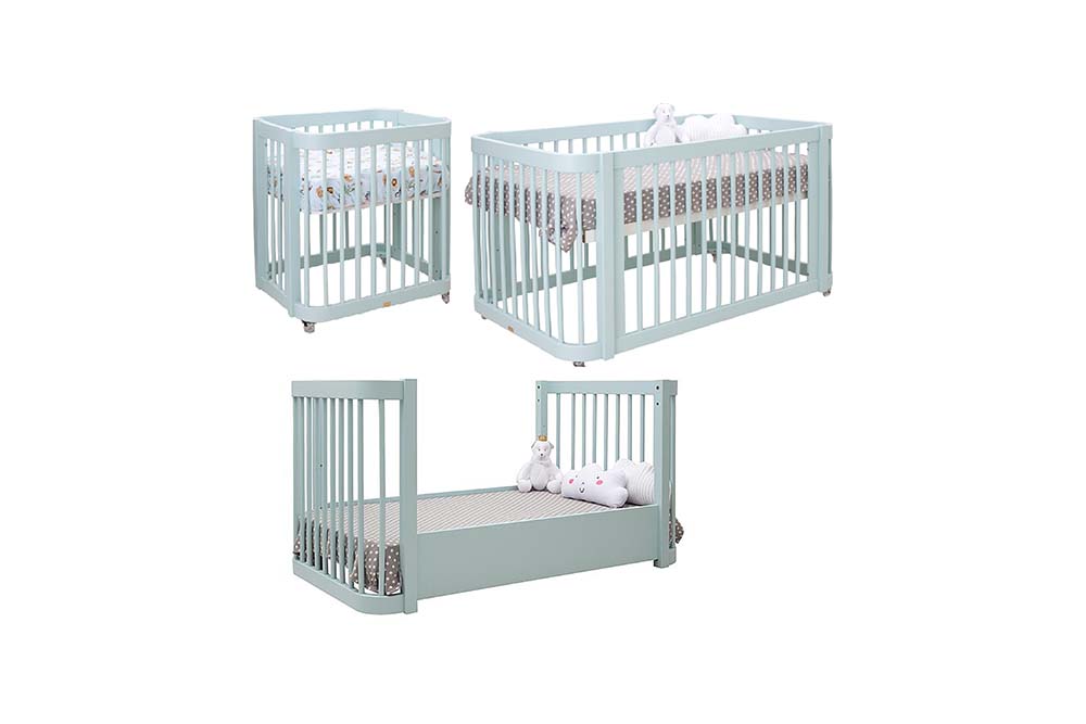 Berço 3×1, 100% MDF com pintura atóxica e rodízios em gel.