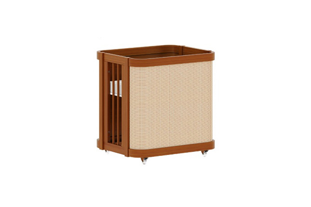 - Um lindo berço em madeira com detalhes nas cabeceiras de uma tela de Rattan.