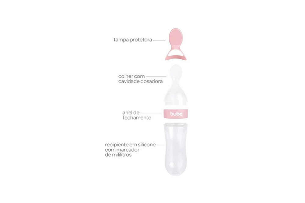 Os pequenos vao se deliciar! A Colher Dosadora da Buba e super pratica, possui recipiente para armazenar a papinha e libera o conteudo a medida que o bebe se alimenta. Ideal para a introducao alimentar, possui tampa protetora para armazenar e transportar com higiene.
