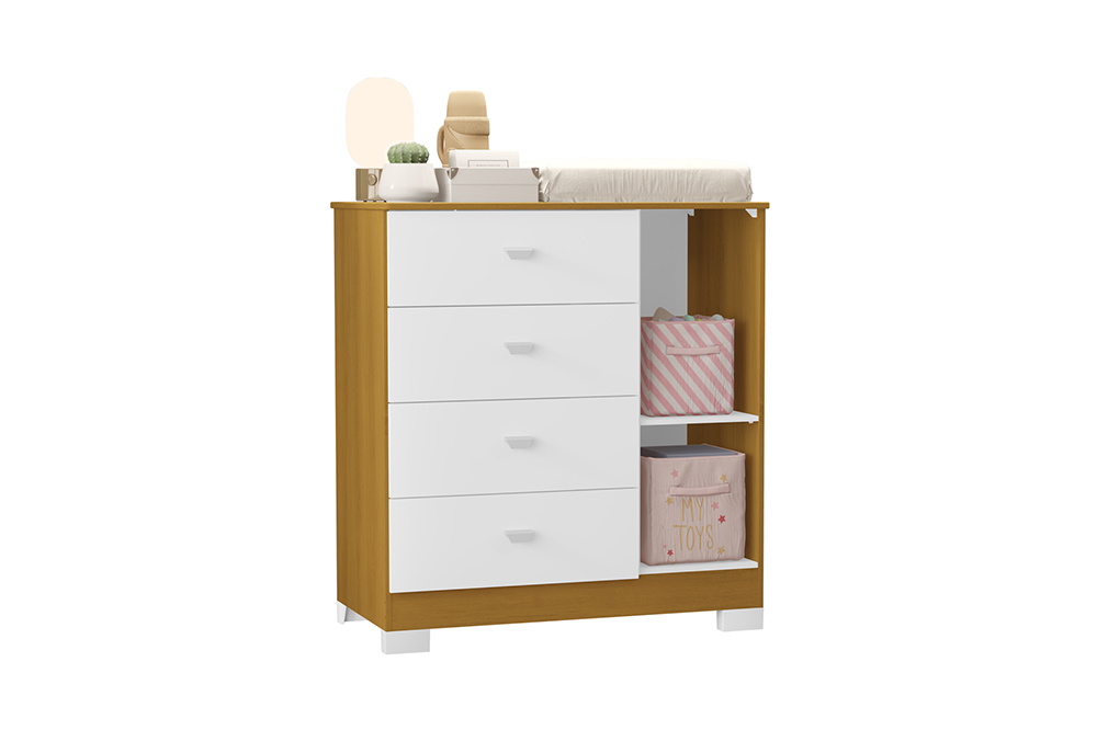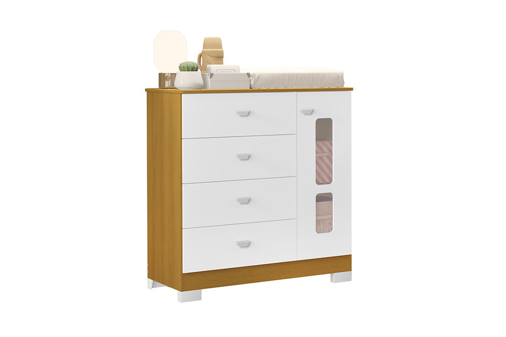 Cômoda com 4 gavetas e 1 porta, 100% MDF.