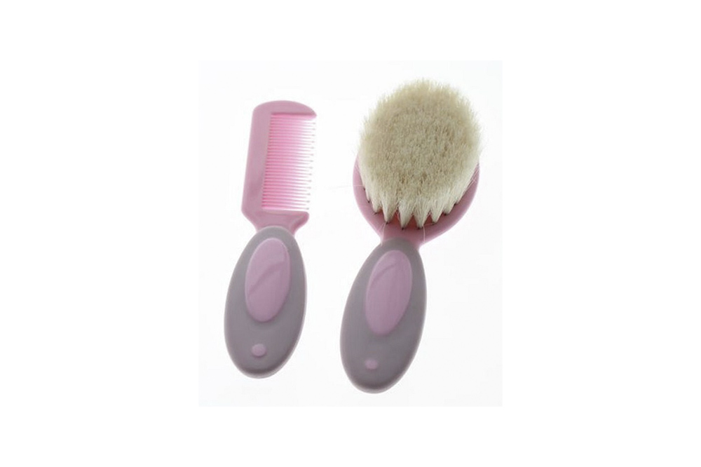 Kit Pente e Escova com cerdas naturais que não machucam o bebê. A escova é flexível e delicada, pois possui cerdas naturais e o pente tem as pontas arredondadas para não machucar o couro cabeludo da criança, o que torna este conjunto ideal para os primeiros anos de vida dos pequenos.