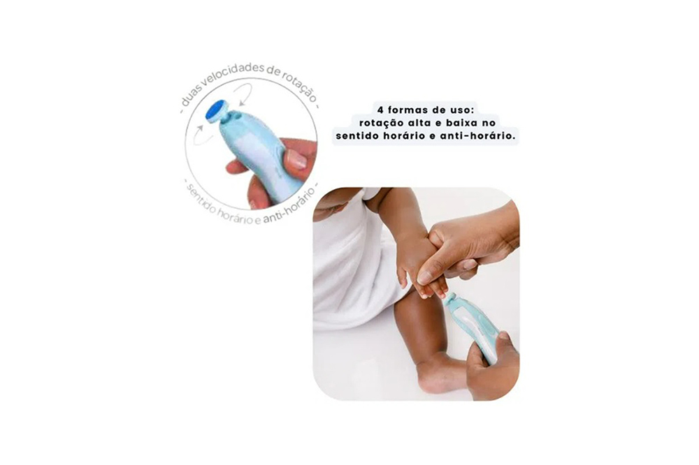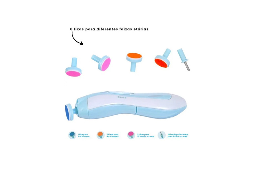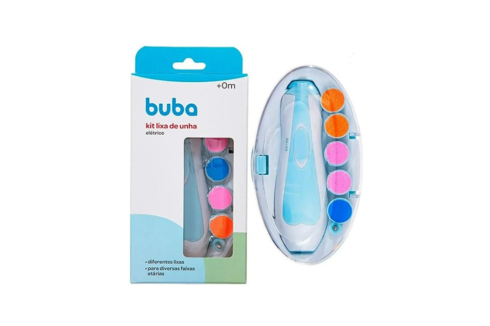 O Kit Lixa de Unha Eletrico da Buba foi desenvolvido para cuidar com delicadeza e seguranca das unhas do bebe. Possui 6 lixas para diferentes faixas etarias e um estojo super pratico para levar em passeios e viagens. Alem disso, conta com luz LED e 4 formas de uso: rotacao alta e baixa no sentido horario e anti-horario.