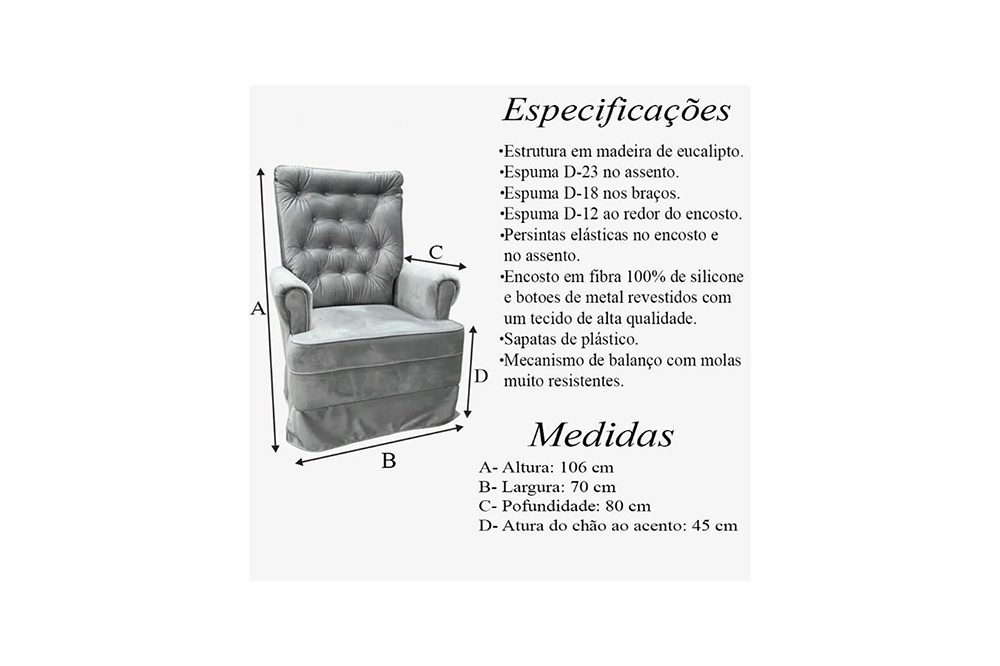 Poltrona de Amamentação foi idealizada para proporcionar tanto para o bebê, quanto para quem vivencia esse momento sublime a seu lado, maior conforto, segurança e bem estar. Com estrutura em madeira e produzida em vários tecidos, facilitando a limpeza, a poltrona conta com leve balanço, possibilitando o ato de ninar o bebê, enquanto ele é amamentado, sendo essencial para acomodar em seu colo, o amor de sua vida! Além de tudo isso, a poltrona deixa o ambiente ainda mais harmonioso, proporcionando um toque de afeto e ternura.